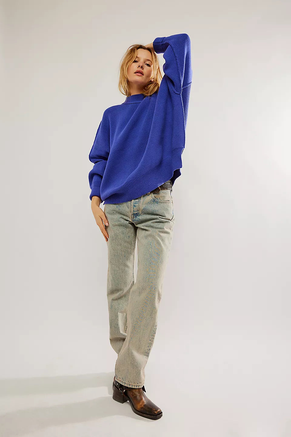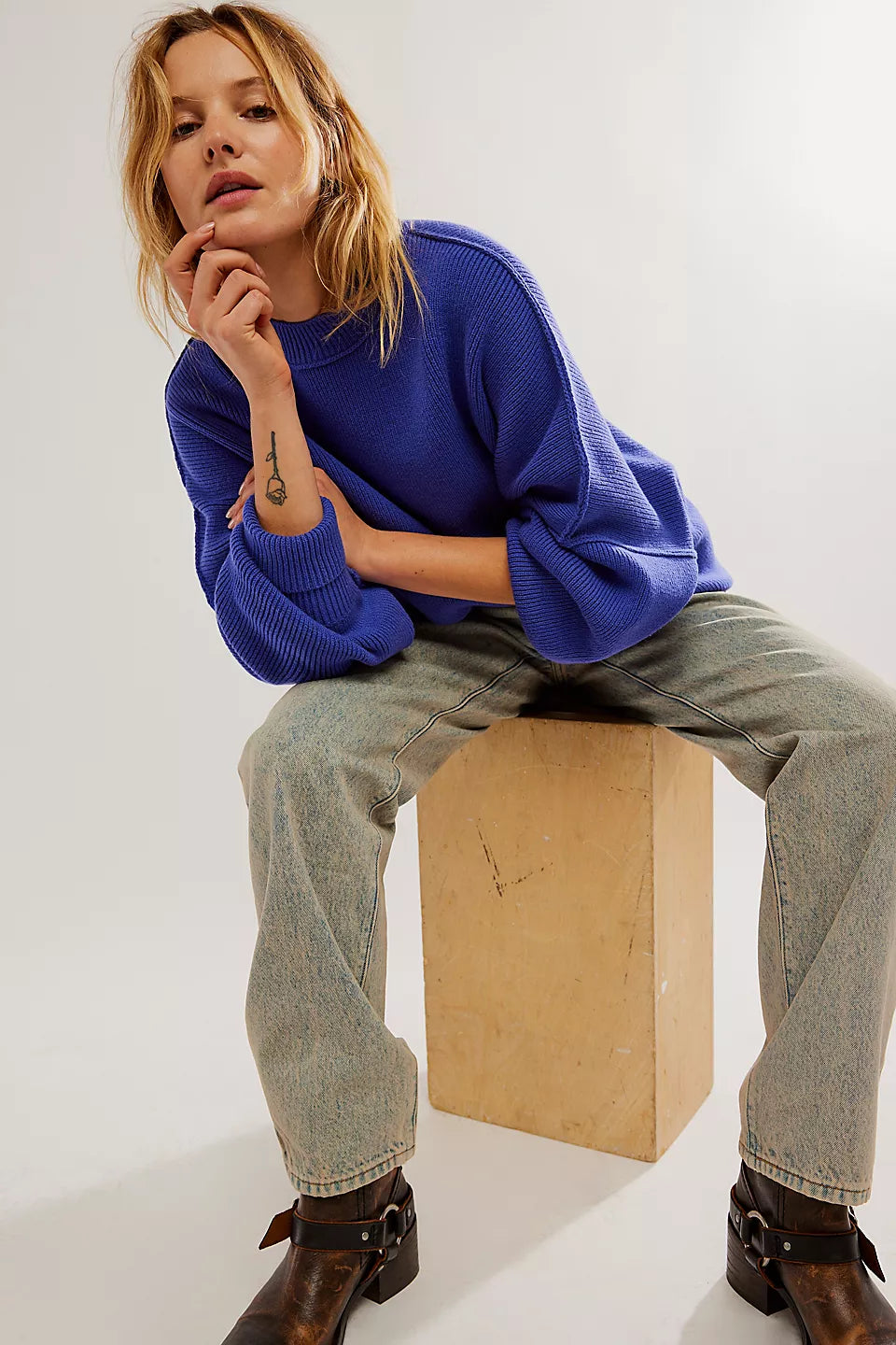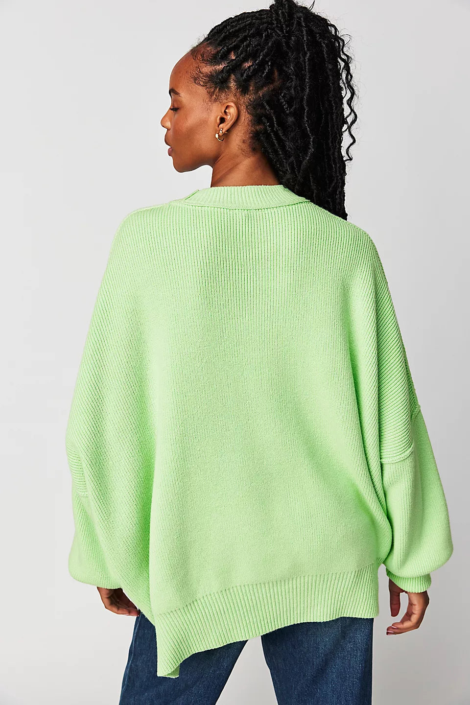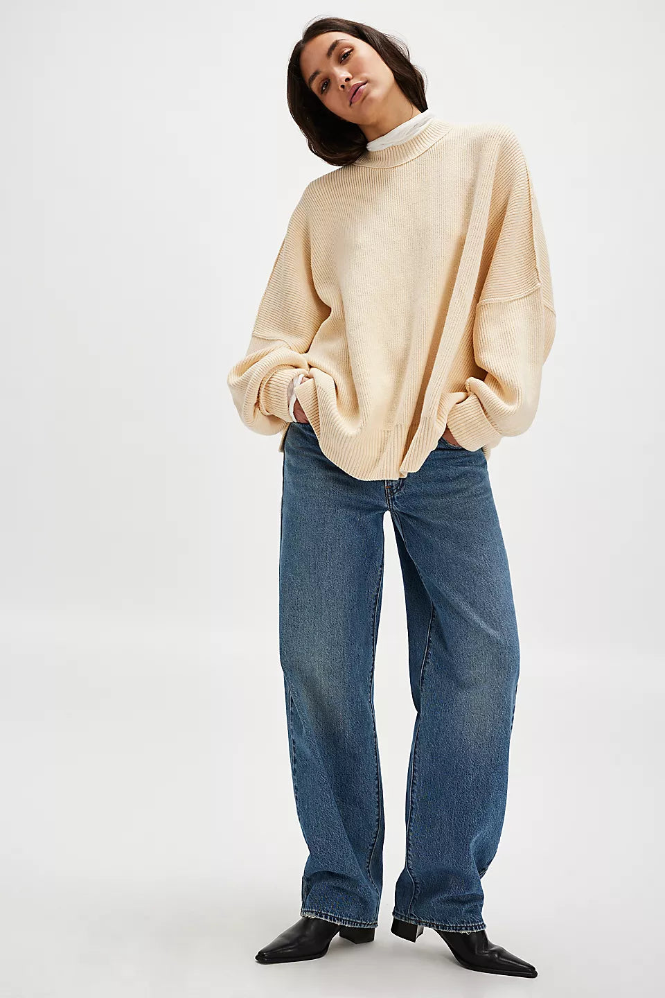 Les couleur du pull apporte une énergie et une audace à la tenue. Ce ton lumineux attire le regard et peut être facilement assorti avec des couleurs neutres comme le beige, le noir ou le blanc. De plus, les finitions côtelées sur le col, les poignets et l’ourlet ajoutent une touche structurée qui contraste avec la coupe ample du pull.c