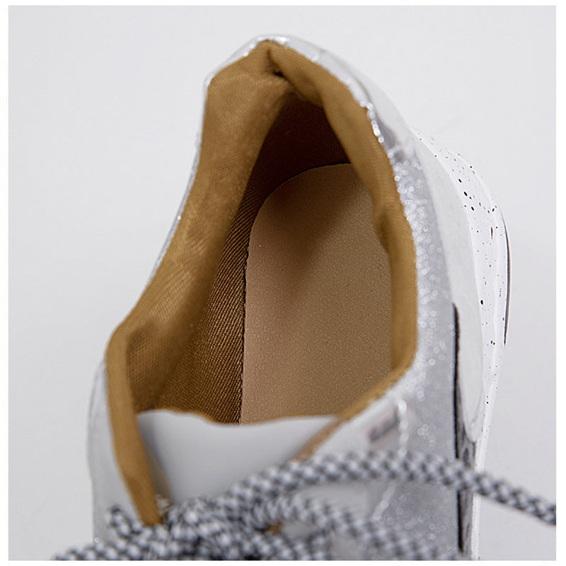 Chaque élément de ce modèle a été soigneusement pensé, des lacets aux empiècements décoratifs. Les effets brillants et les touches imprimées ajoutent du caractère à l’ensemble, offrant un bel équilibre entre chic et décontraction. Ce modèle s'adapte aussi bien à une tenue urbaine qu'à un look plus casual, en apportant toujours une touche de fraîcheur.