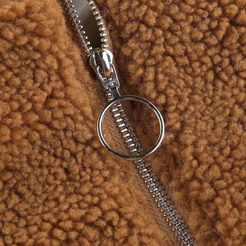 L'originalité de cette veste réside dans l'association de différentes matières, apportant du relief et une touche sophistiquée. La partie principale en tissu effet peluche offre un aspect doux et chaleureux, tandis que les empiècements contrastés au niveau des épaules et du col créent un équilibre visuel intéressant. Cette combinaison de textures la rend aussi élégante que pratique.