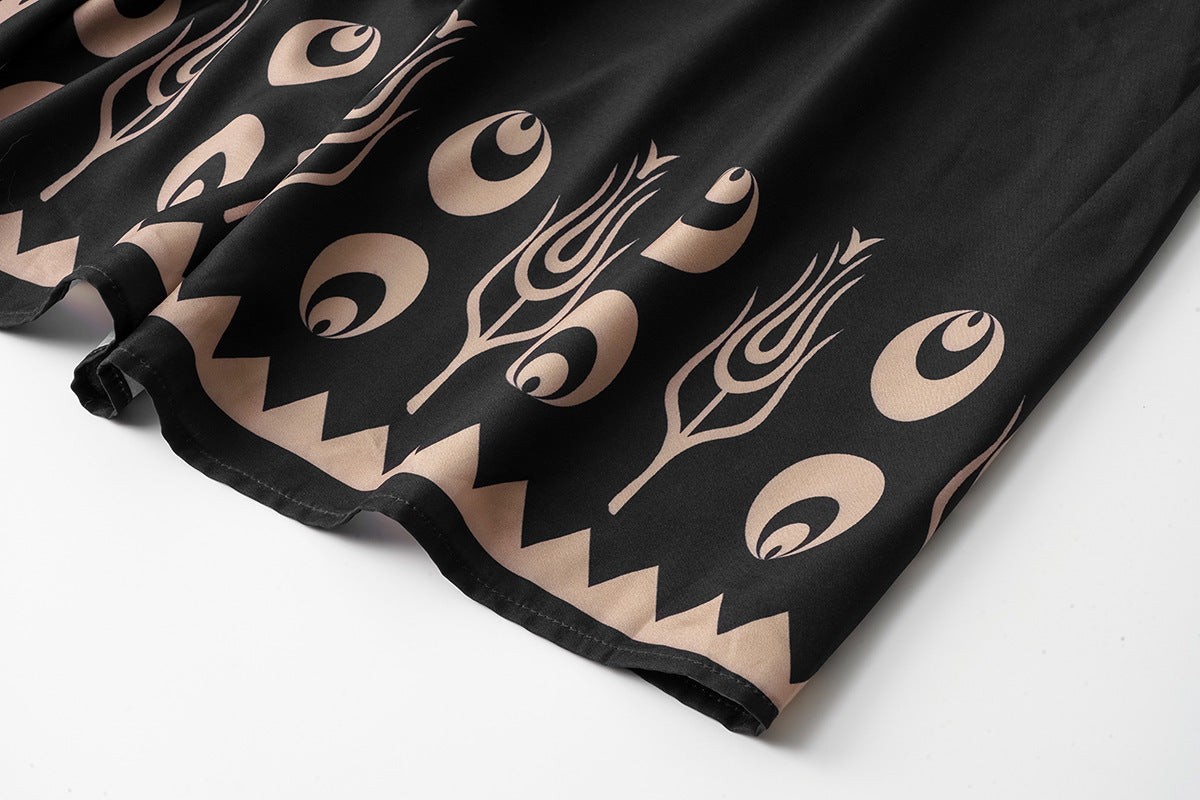 Les ornements imprimés sur la robe RAVENNA ajoutent une touche artistique et sophistiquée. Inspirés d’anciens symboles mystiques et de motifs géométriques, ils apportent une dimension unique à la tenue. Le nœud délicat à la taille souligne la silhouette avec élégance, tandis que les bordures finement travaillées accentuent l’harmonie visuelle de l’ensemble.