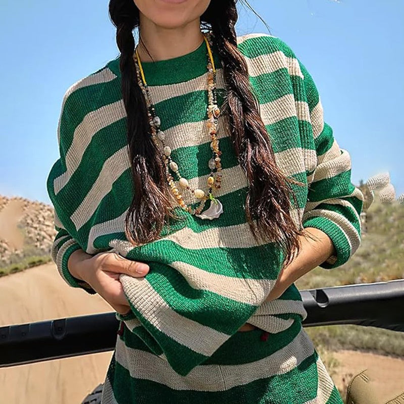 Grâce à son design harmonieux, cet ensemble s’adapte à différentes occasions. Il peut être porté pour une sortie en plein air, un moment de détente à la maison ou même une promenade en ville. La superposition du pull avec un haut plus long en dessous ajoute une dimension moderne et joue avec les volumes, apportant une touche d’originalité au look.